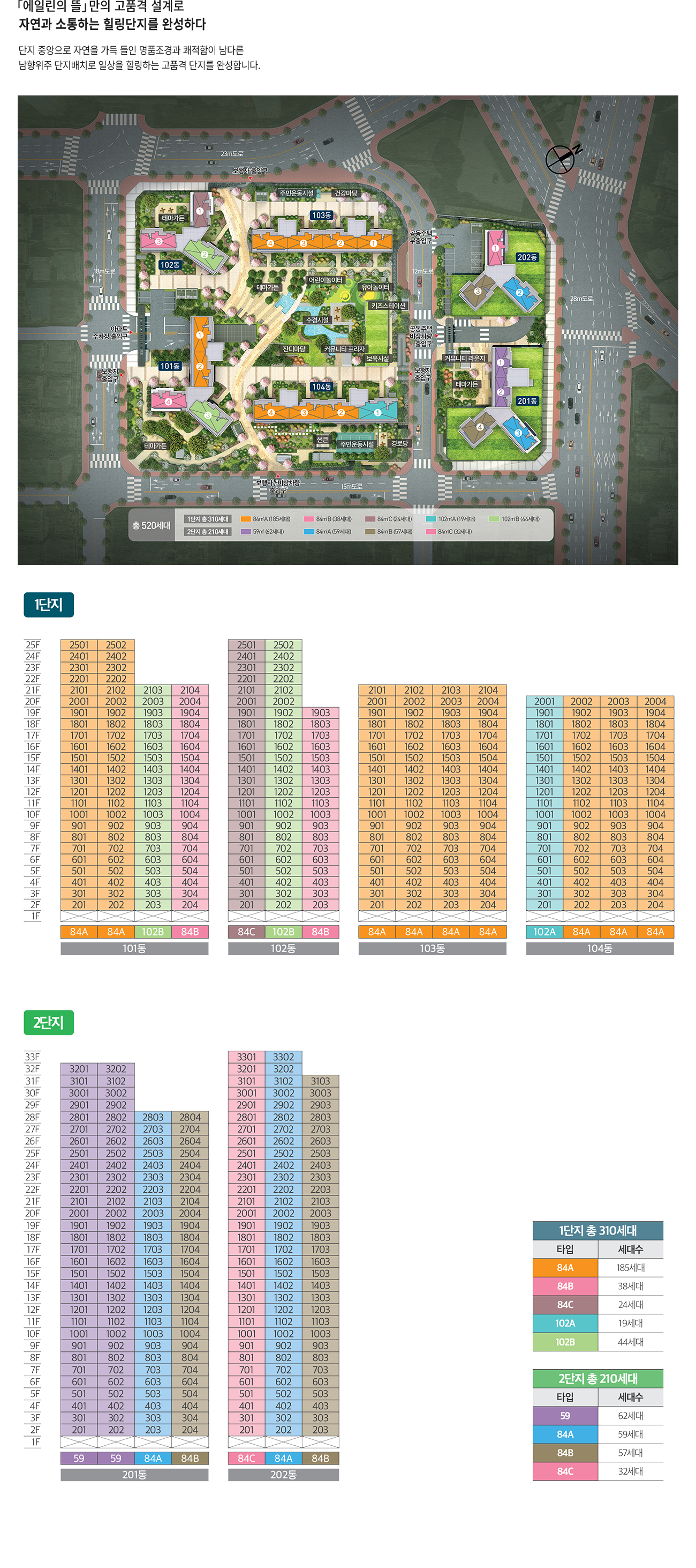 단지배치도 및 동·호수표